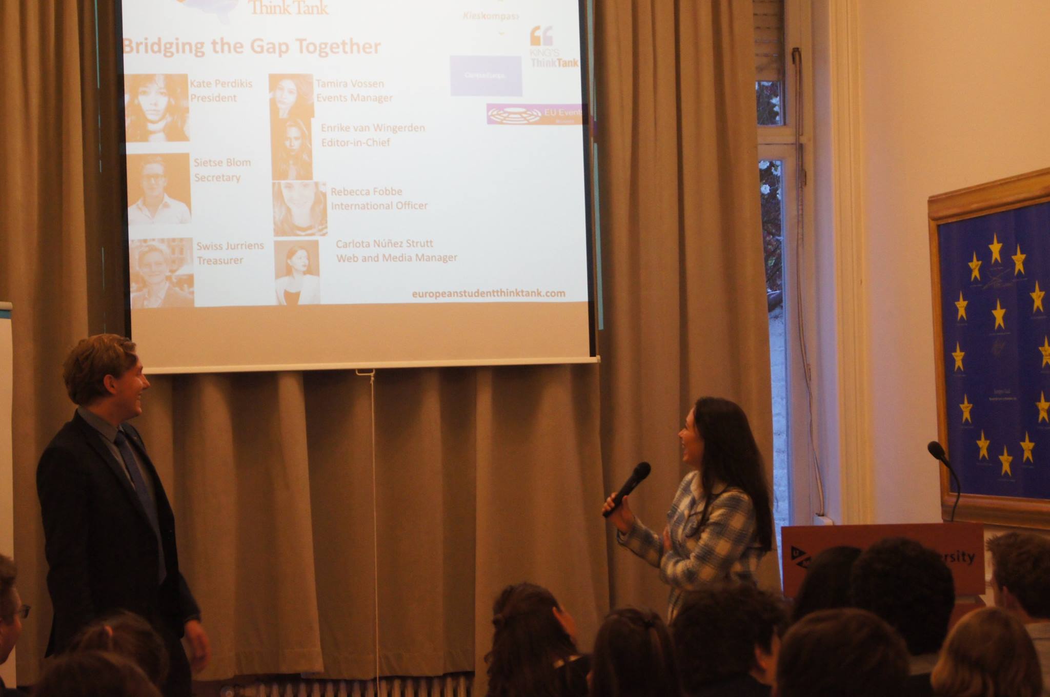 Saturday 16 April Student Forum Maastricht hosted a meeting of partners in Brussels. The European Student Thinktank was represented by Kate Perdikis and Sietse Blom. At the Maastricht University Campus various young initiatives were offered the opportunity to speak on how they contribute to a better Europe. As a think tank we attempt to do this by ‘bridging the gap between students and Brussels’, our mission. We spoke about the platform we offer students for their work to be read and discussed by others, on social media, our website or in our academic journal, the European Policy Review. Through our diverse content we distinguish ourselves from other youth organizations, varying from blogs to Q&A’s with Members of the European Parliament to academic master pieces. Which is strengthened by our cooperations with partners, representation in the member states through our Ambassadors and the diverse events we host. We reach a broad scale of people this way.